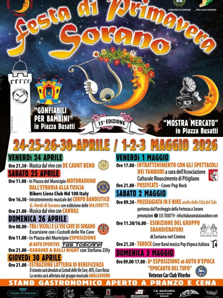 Potrete scoprirete suggestivi insediamenti rupestri, borghi e fortificazioni medievali (Pitigliano, Sovana e Sorano), secoli di storia e tutti i sapori di un terra generosa che produce olio e vino di altissima qualità!