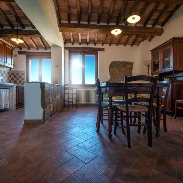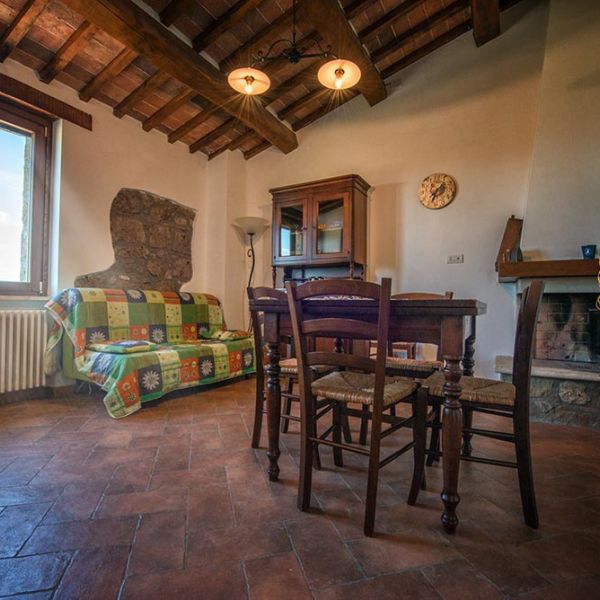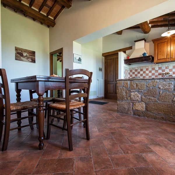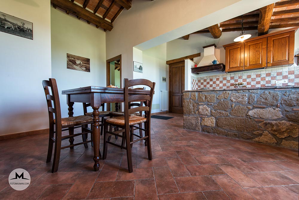 L’arredamento in stile arte povera richiama con eleganza la tradizione contadina, immergendo gli ospiti nell’atmosfera calda e genuina della vita rurale maremmana.